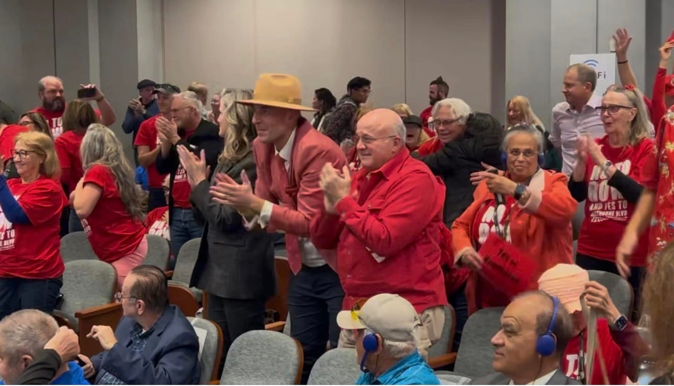 After a marathon hearing, involving 172 oral public comments, the result was met with delight by the many NO ON ROW campaigners who attended the meeting.
