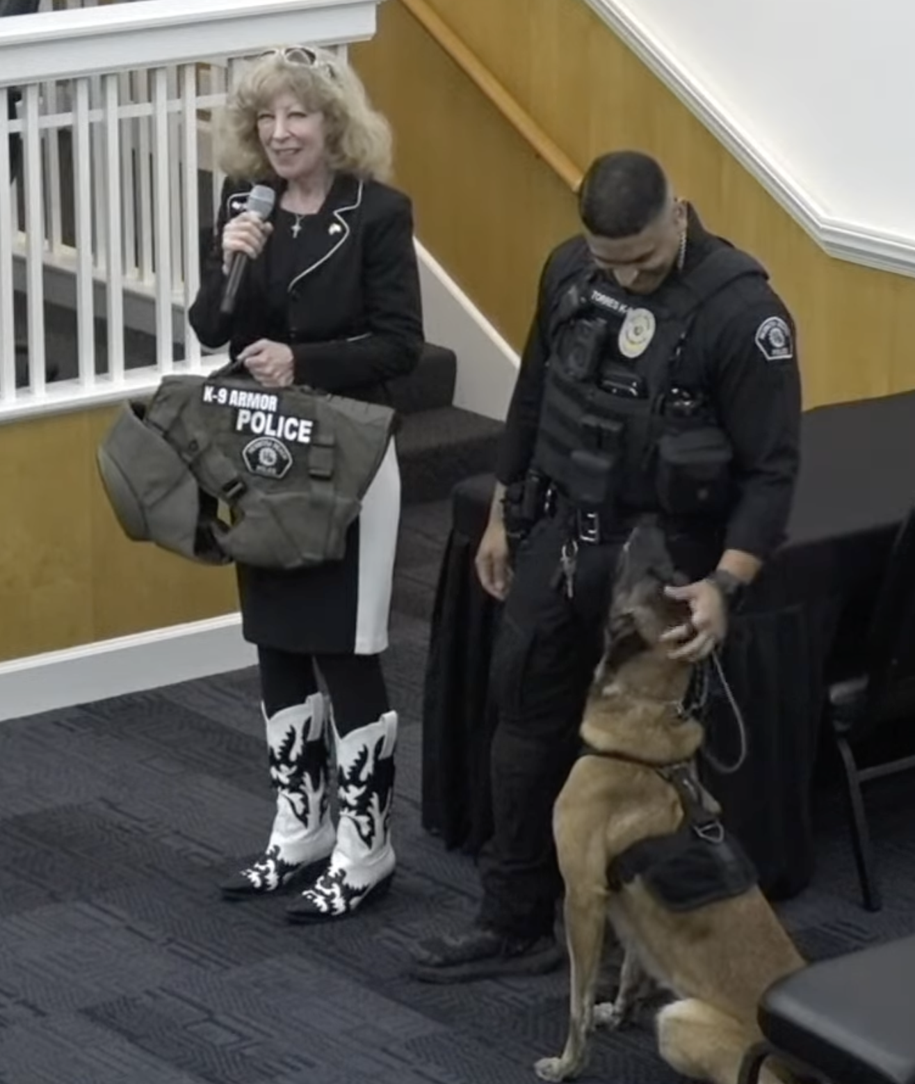 The evening's presentation centered on a crucial piece of equipment: a bulletproof vest donated by Canine Armor, a public benefit charity that provides protective gear to California police dogs.