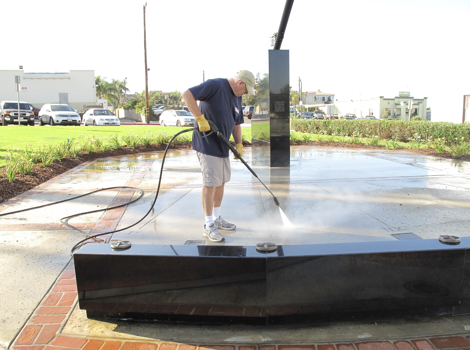 For more than three decades, Steve Crecy and Mike Flaherty have tended to the Hermosa Beach Veterans Memorial, washing its black granite surface, pulling weeds from the surrounding garden, and hosing down the walkway around the structure.